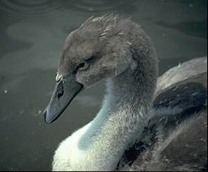 The cygnets when hatched are grey and downy, but this down is soon replaced by brown feathers, which gradually turn white during the next 12 months. The parent birds strongly protect their offspring for the first few months but will drive them away by the following breeding season.